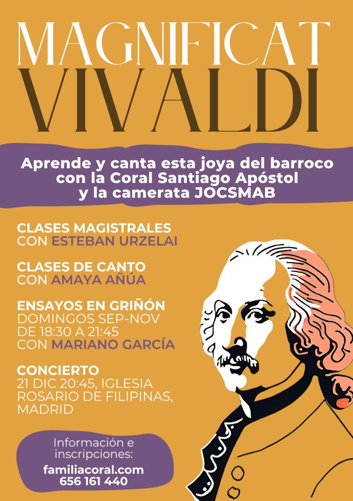 ¿Eres un amante de la música barroca? ¿Te gustaría interpretar una de las obras más emblemáticas de Antonio Vivaldi? Esta es tu oportunidad para unirte a la Coral Santiago Apóstol y participar en un emocionante proyecto didáctico-coral que culminará con un gran concierto en Madrid.